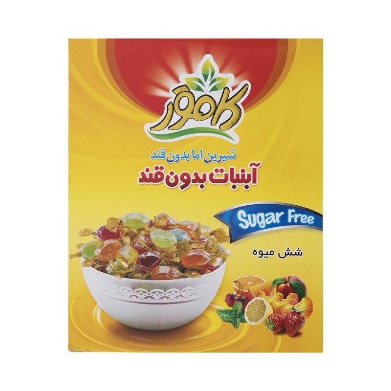 در آبنبات بدون شکر کامور, از آسه سولفام و ایزومالت به عنوان شیرین کننده استفاده شده است که علاوه بر داشتن طعم و مزه شکر طبیعی، کم کالری بوده و برای افراد دارای رژیم غذایی, لاغری و افراد دیابتی مناسب می باشد.در بسته بندی این محصول آبنبات در طعم های مختلفی نظیر لیمو،نعنا،پرتقال، البالو،توت فرنگی،هلو و …. موجود می باشد.