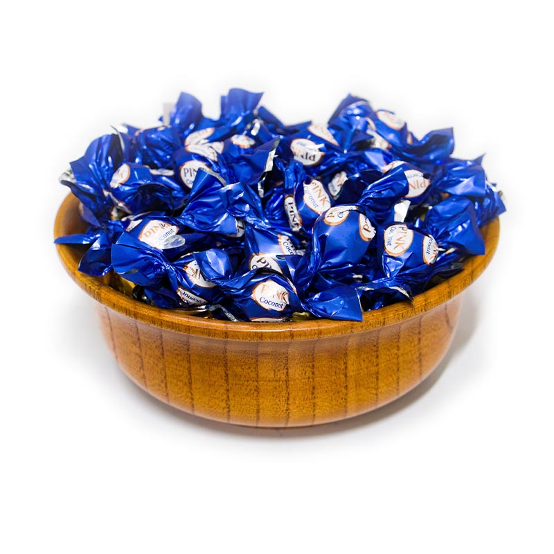 شکلات ترافل نارگیلی پینک با روکش شکلات نرم و مغز پُر از پودر نارگیل شیرین شده، طعمی گرمسیری و خاص دارد.