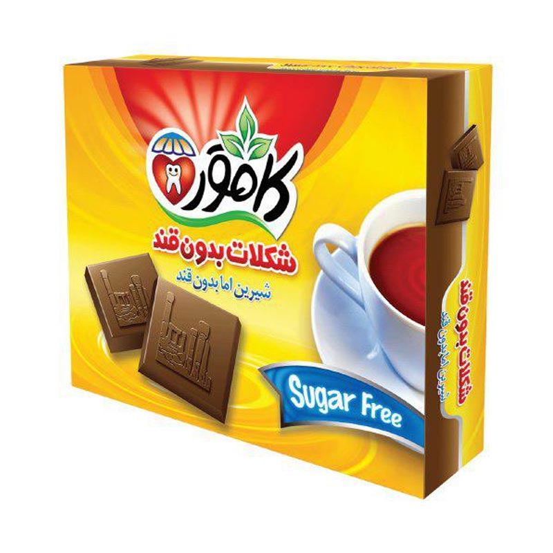 کلاتی است که در ترکیب آن به جای شکر از یک قند غیر قابل جذب برای بدن استفاده شده است که علاوه بر آنکه طعم شیرین شکلات را حفظ می کند، به هیچ وجه قند خون را افزایش نداده و چون جذب نمیشود کالری کمتری به بدن میرسد که خود یکی از عوامل کنترل وزن است، همچنین مانع گرفتگی رگ ها و بیماری های قلبی و عروقی شده ، تنظیم کلسترول بالای خون ، درمان سرفه می شود. همچنین به علت وجود تئوبروماین در کاکائو احساس نشاط در مصرف کننده ایجاد می شود.شکلات کاکائو فانتزی رژیمی و بدون قند کامور یک شکلات رژیمی و با کالری پایین می باشد که از دو شیرین کننده طبیعی ایزومالت و آسه سولفام پتاسیم تهیه شده است. به همین جهت کاملا مناسب افراد دیابتی، افراد تحت رژیم لاغری و کودکان می باشد.