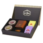 این پک کادویی با ترکیبی از زعفران ممتاز، هل سبز، نبات زعفرانی، چایهای کیسهای و دیوان حافظ جلد چرمی، جلوهای شیک و ارزشمند دارد و هم برای هدیه دادن و هم برای تجربهای لوکس خانگی مناسب است.